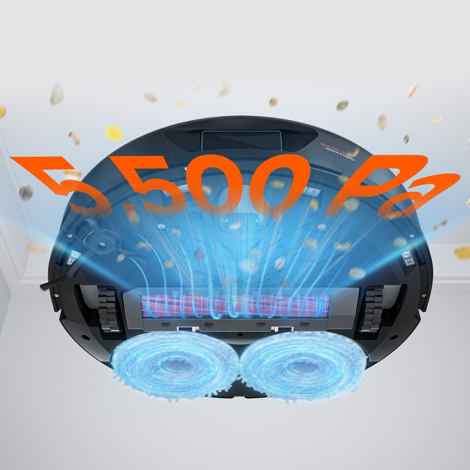 -Multifunctional Dock,-Self-Washing&Self-Drying,-Self-Emptying&Self-Refilling,-Detachable Dock Base,-Dual Spinning Mops,-Auto Mop Lifting,-5500Pa Extreme Suction,-All-Rubber Brush,-PreciSense® LiDAR Navigation,-Reactive Tech Obstacle Avoidance,-Smart Suggestions for No-Go Zones,-Alexa&Google Assistant and Siri Shortcuts Supported,-30% Faster Charging,-Off-Peak Charging Supported